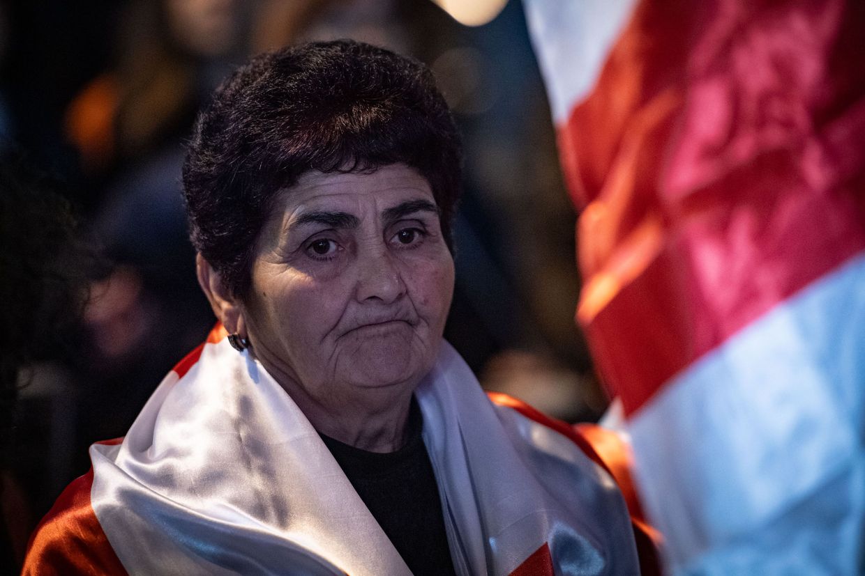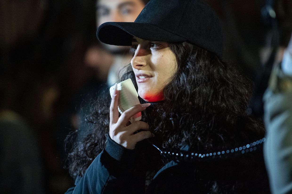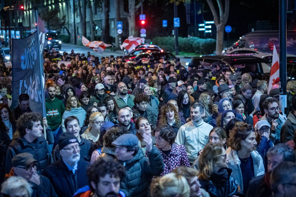Despite the size of Wednesday’s march, police did not let the demonstrators walk on a bus lane along the pavement. In response, the protesters headed towards the smaller streets in Tbilisi’s Vera and Mtatsminda districts. Eventually, the march stopped on Polikarpe Kakabadze street to read out the names of imprisoned protesters, to sing the national anthem, and to wait for a smaller march heading to join them from Rustaveli.