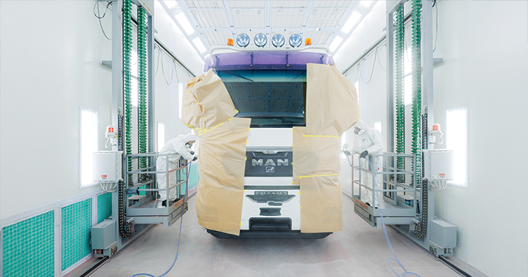 This area includes a painting and body shop with no equivalent elsewhere in the region. The 22-metre-long workshop allows for the simultaneous painting of large vehicles.
