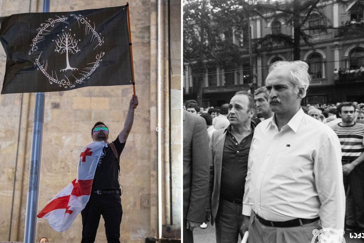 Meskhi added that he intended to challenge the perception of a generational divide amongst the protest movement, and to show that those who are critical of the government come from different age groups and backgrounds. That is why, he says, he also mentioned Merab Kostava — a symbol of anti-Soviet national liberation — alongside Gondor, Rohan, and the Akatsuki.
