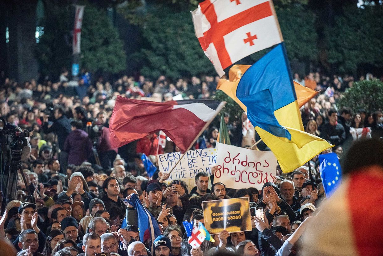 Peaceful protestors have gathered in front of the Parliament Building in Tbilisi, Georgia, to voice their concern over the repressive direction of their country. They have every right to democracy, to freedom of expression and basic human rights.