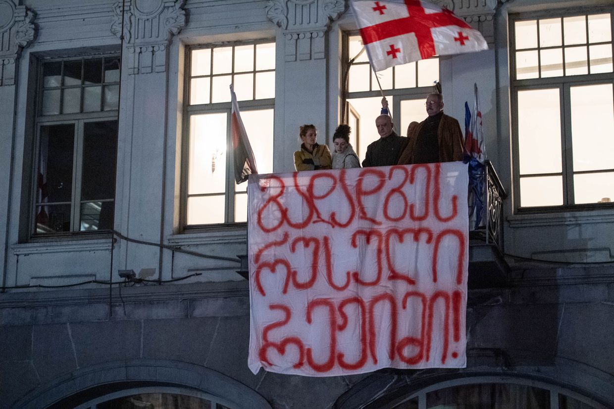 The event had been planned over two weeks by a number of opposition political groups and activists. Demonstrators carried Georgian flags as well as those of the country’s traditional partners, the EU and the US.