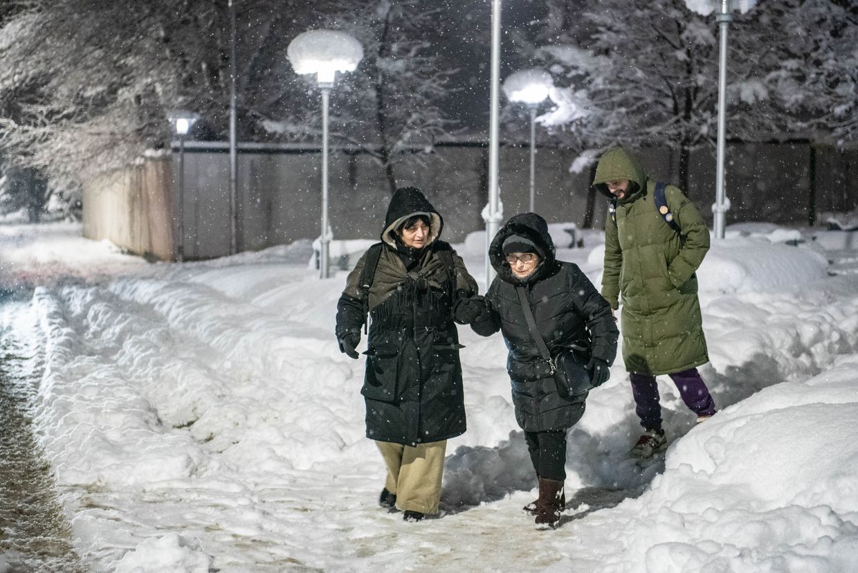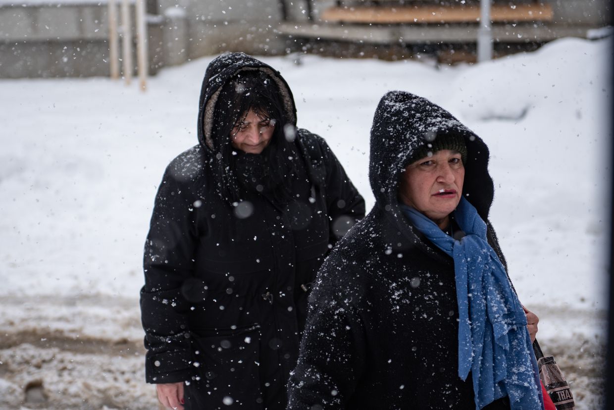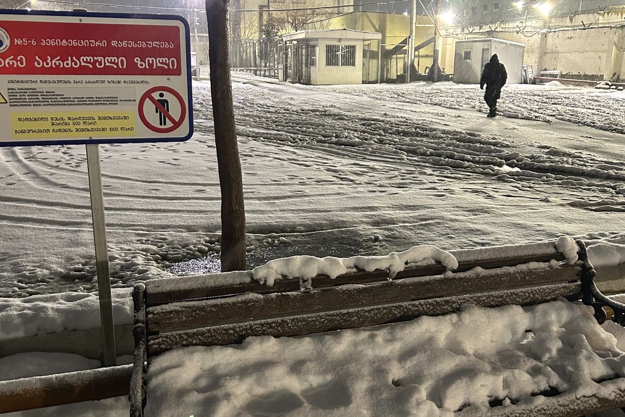 Those in Rustavi had to wait in their cars, while at Tbilisi’s Gldani’s facility No. 8 — where there is no parking nearby — families and journalists stood outside in the snow and bitter cold.