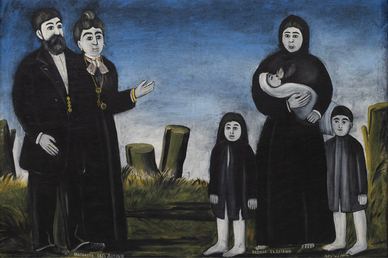 In 1910, the destitute, self-taught Georgian artist Niko Pirosmani painted a simple, yet devastating scene: a wealthy, childless couple staring at a poor woman holding her newborn, with the other two kids in tow.