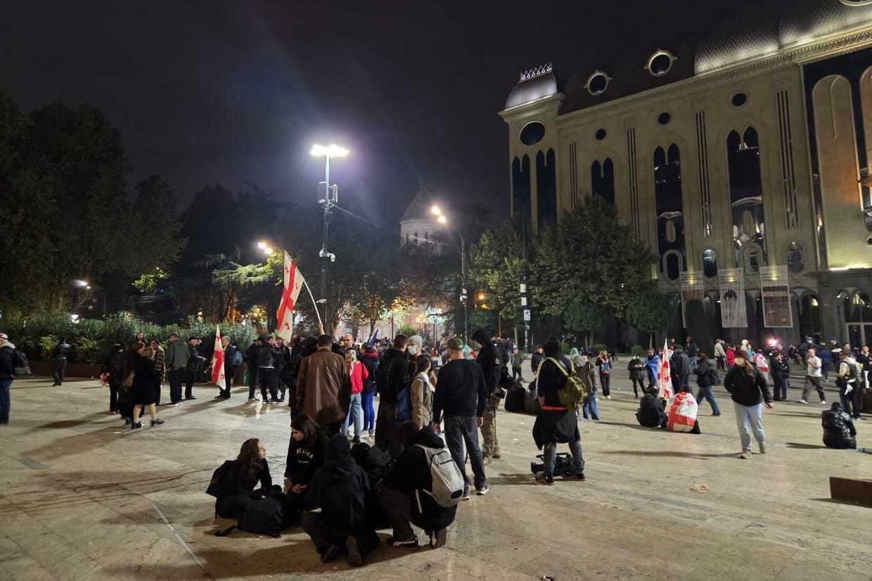 Several hundred scattered protesters still remain outside the Georgian Parliament, with the rest having left.