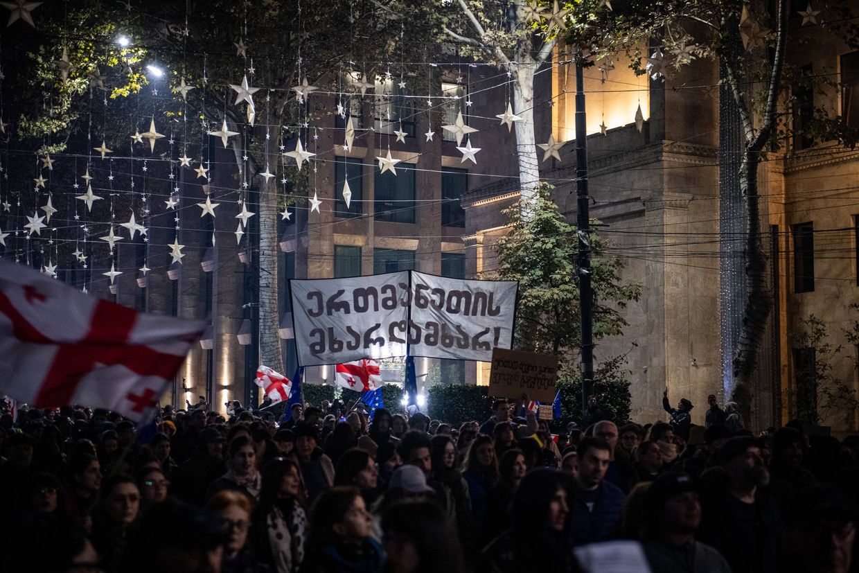 On Friday evening, thousands of Georgians took to the streets across the capital Tbilisi to mark the one-year anniversary of the government’s EU U-turn — one year since daily anti-government protests began in response.