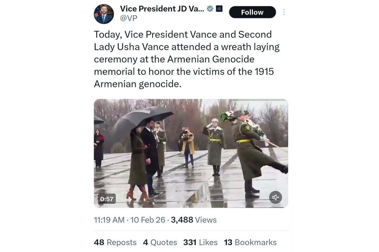 US President JD Vance and Second Lady Usha Vance visited the Tsitsernakaberd Armenian Genocide Memorial on Tuesday, sharing a post that explicitly described the 1915 massacres as a ‘genocide’, before deleting the post shortly after.